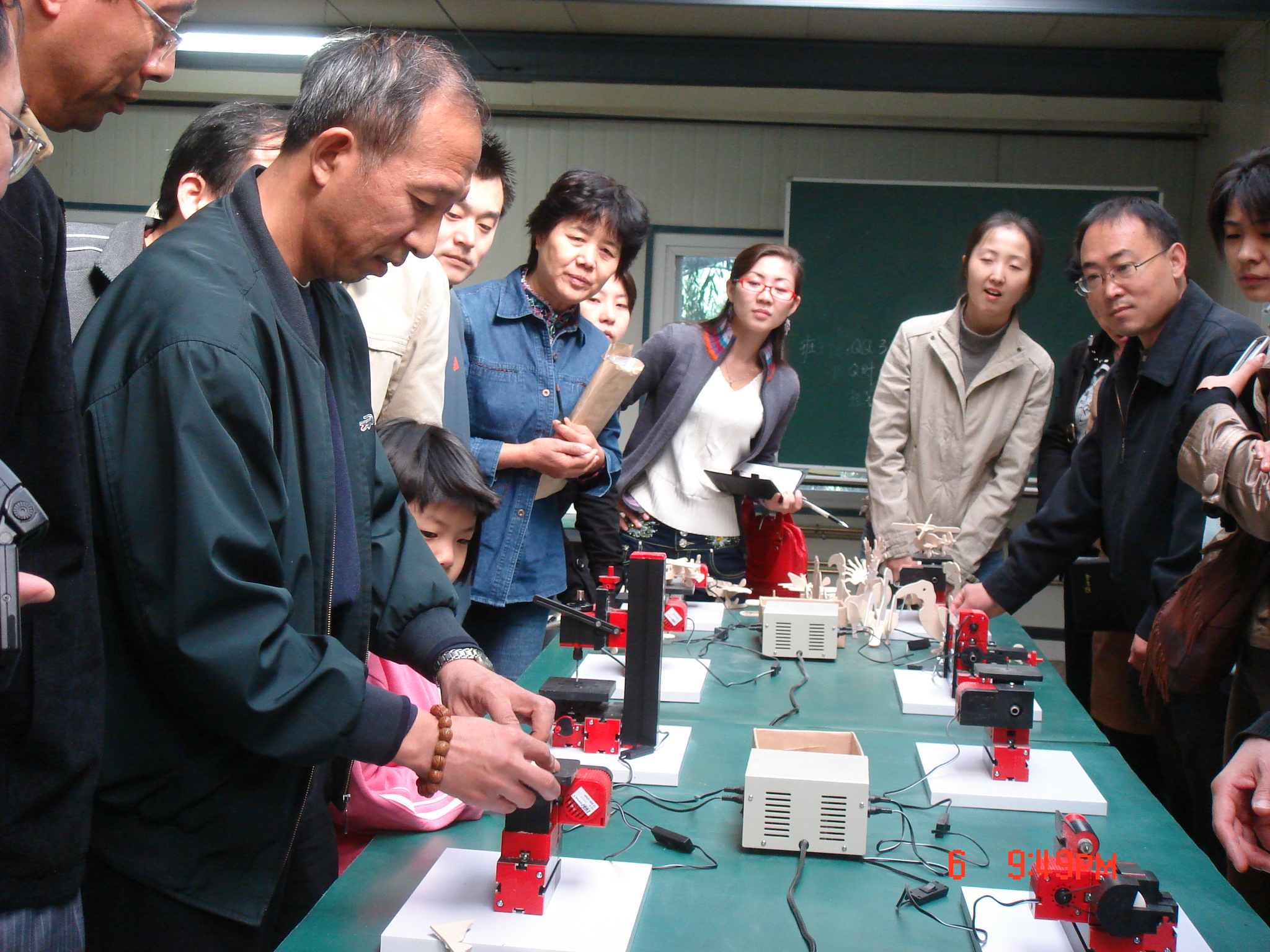 在一个教室中,学生们在对自己的作品进行演讲展示。图一创客教育专家组在演示奥地利Thecooltool小创客工具,中国传统木工为基础,在作品的创作中加如电子技术(能源技术,例如太阳板电池,小马达)、传动机构,单片机、电脑编程综合起来,将是学生创客素质综合培养的方向。可编程主板、3D打印甚至是VR虚拟现实这些高精尖技术产品,如何进入到学生的教室中?这其中就涉及了现在非常火爆的创客教育理念。